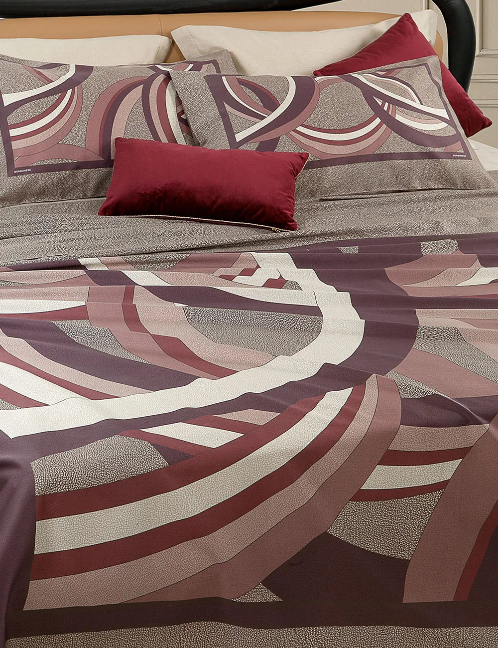- Il lenzuolo e le federe sono stampati con design personalizzato dall’iconica texture “OP” Occhio di Pernice; il sotto con angoli è in raso tinta unita.