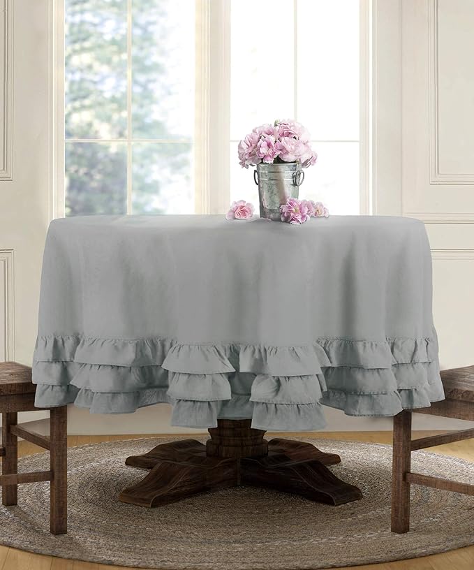 Tovaglia rotonda con rouches L'Atelier17, adattabile come copritavolo o tovaglia.