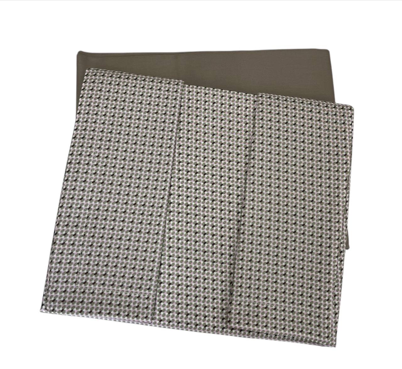 - Misura Matrimoniale: lenzuolo sopra 260x290 cm, lenzuolo sotto in tinta unita con elastici 175x200+30 cm