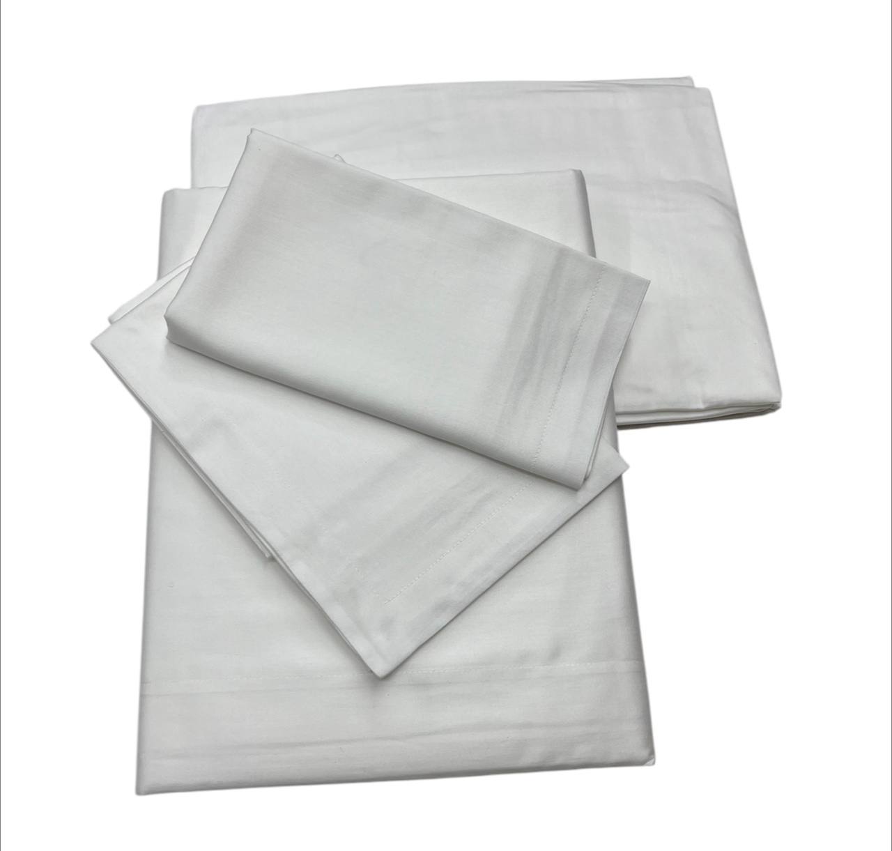 Completo lenzuola matrimoniale Incanto Riviera, il tessuto in raso di cotone, piacevole sulla pelle, a tinta unita per abbinarle facilmente a qualsiasi copriletto.