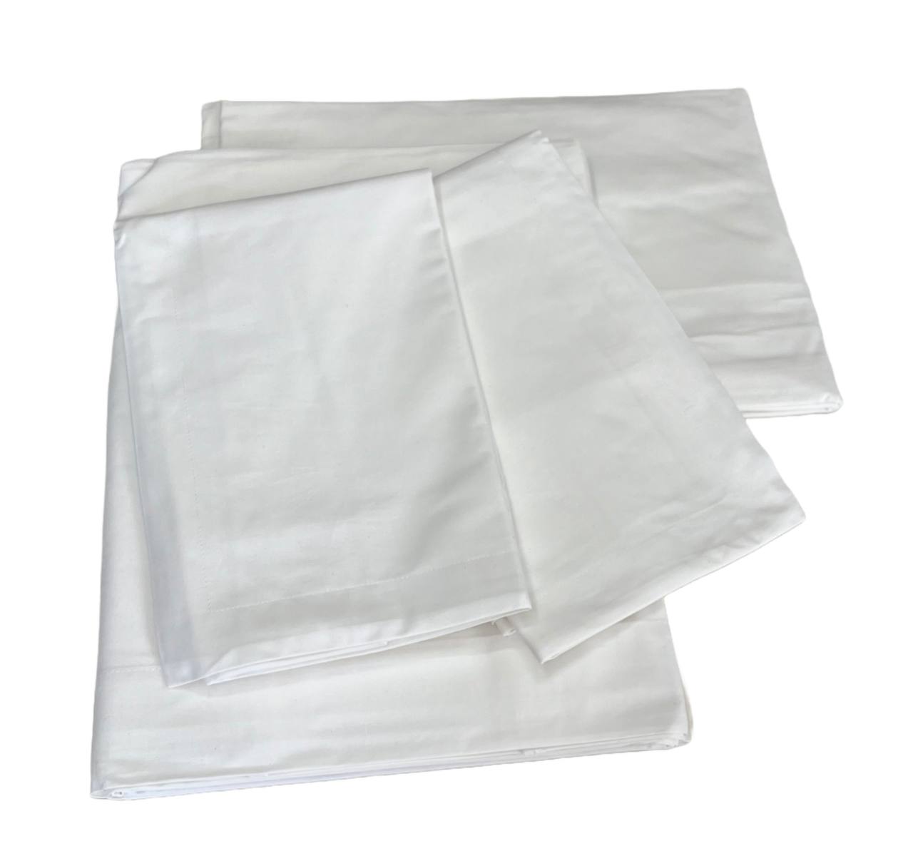 - misura francese: 1 lenzuolo sopra 220x290cm, lenzuolo sotto con angoli 140x200cm ang. 28cm, 2 federe a 4 volani 50x80cm +3 cm