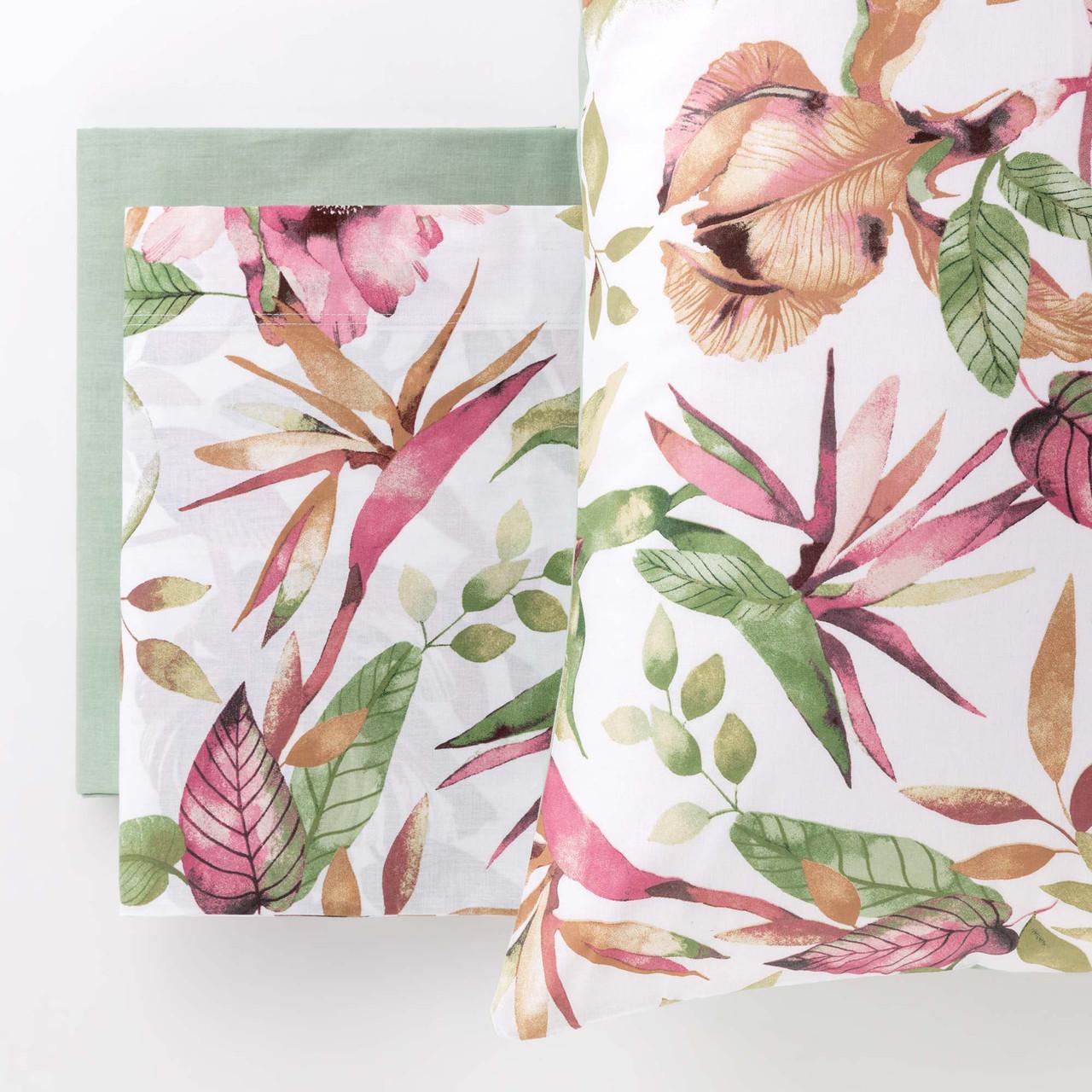 Completo lenzuolo copriletto matrimoniale Hibis Riviera, per un letto super colorato patico e comodo anche in estate con balza applicata può essere utilizzato anche senza copriletto poichè tutto stampato. Confezione in pratico sacchetto di tessuto riutilizzabile.