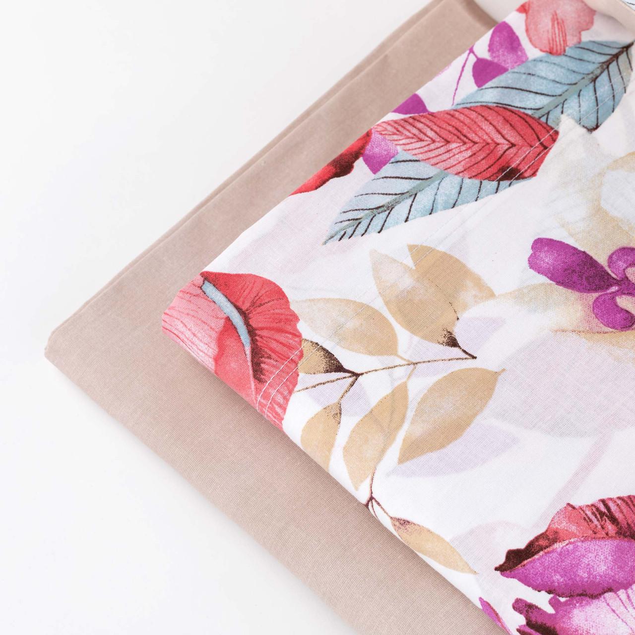 - lenzuolo sopra stampato, lenzuolo sotto tinta unita, federe double da un lato a fantasia, dall’ atro lato tinta unita
